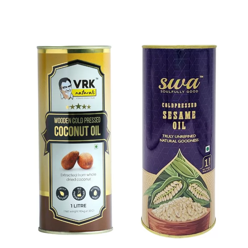 Cold Pressed Sesame Oil + Cold Pressed Coconut Oil 1Litre(combo) comes in premium tin packaging which preserves the composition of the oil, reduces the rancidity caused by sunlight, is user friendly and recyclable.